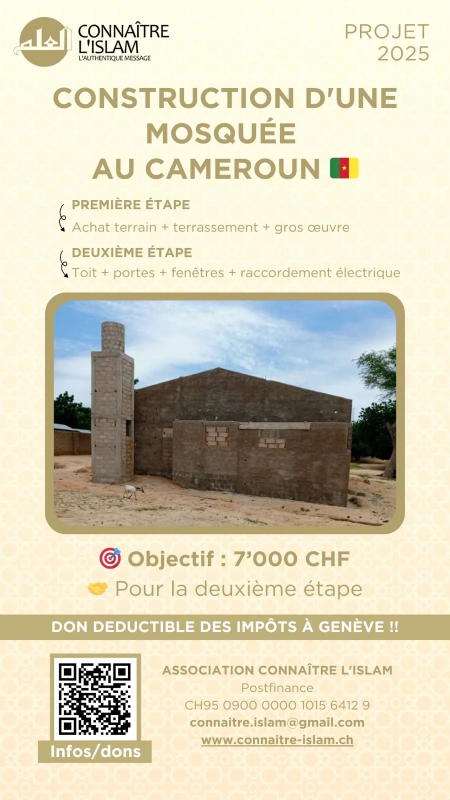 Il est obligatoire d'indiquer la raison de votre don dans la case "commentaire" : Mosquée Cameroun